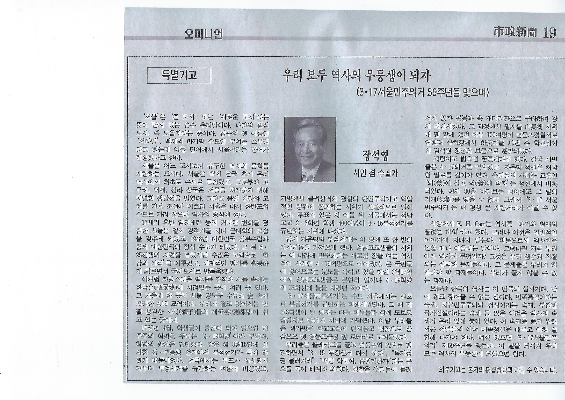 • 우리 모두 역사의 우등생이 되자(3.17서울민주의거 59주년을 맞으며)