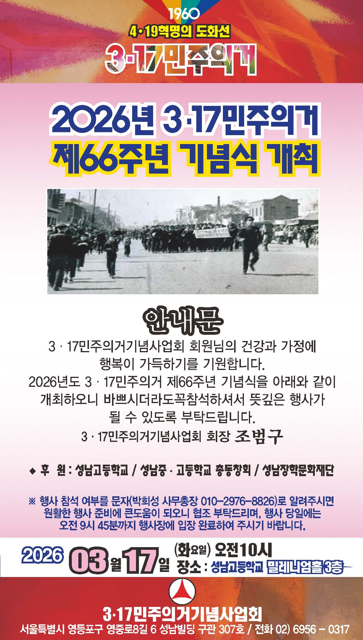 -. 행사명 : 2026년 3.17민주의거 제66주년 기념식