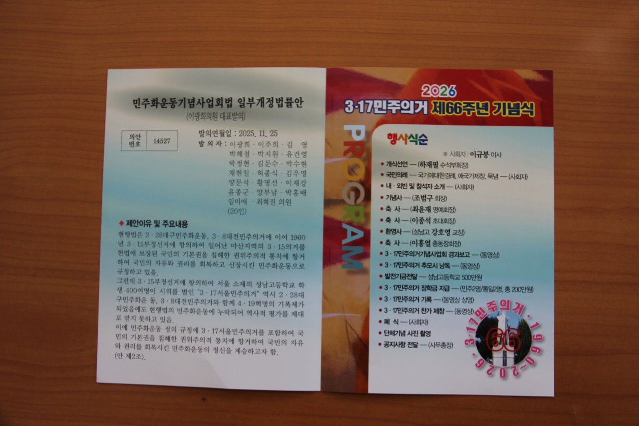 - 제목 : 2026년 제66주년 3.17민주의거기념식