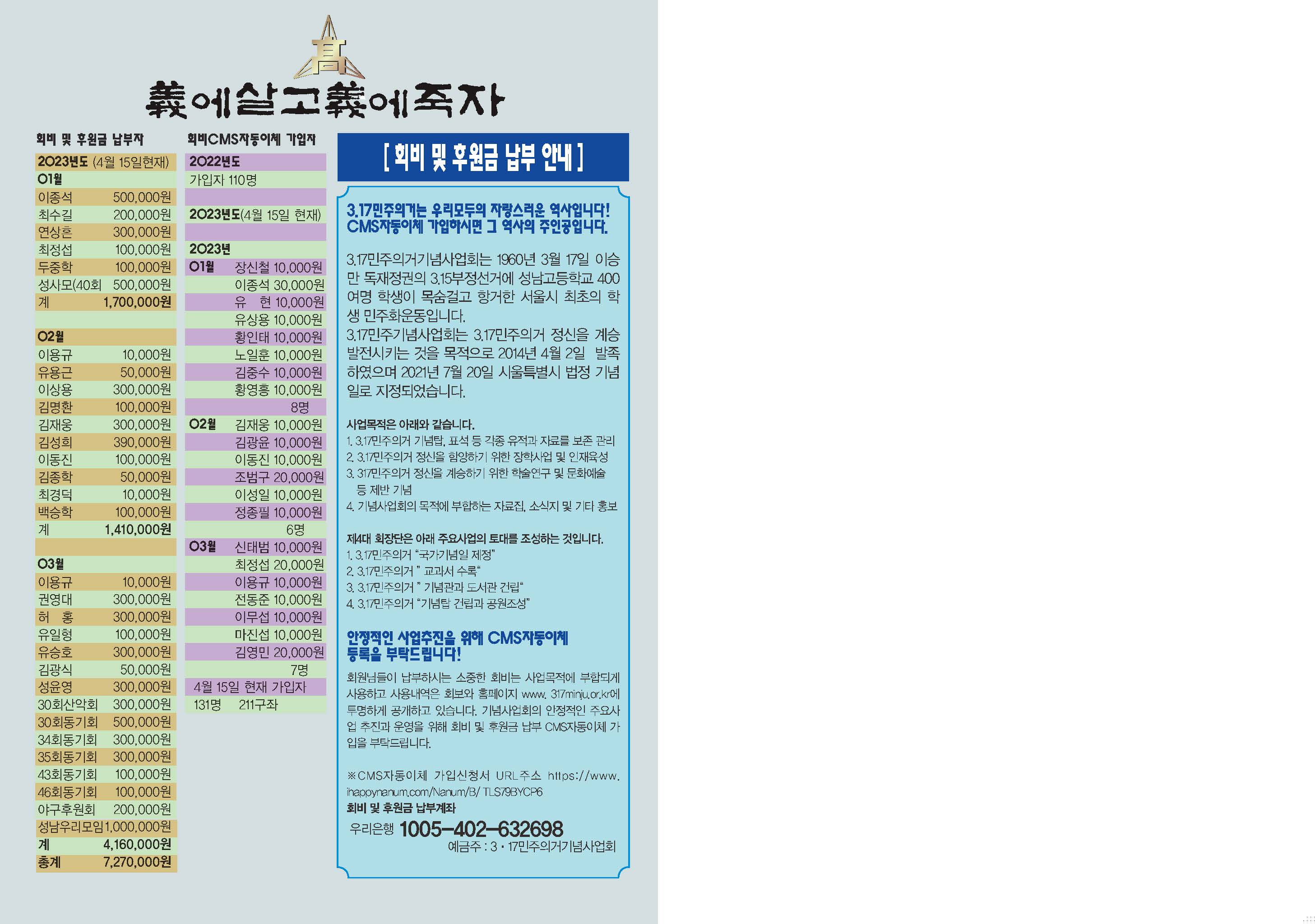 1. 3.17 의거의 민주정신과 4.19민주이념 계승및 선양을 위한 사업