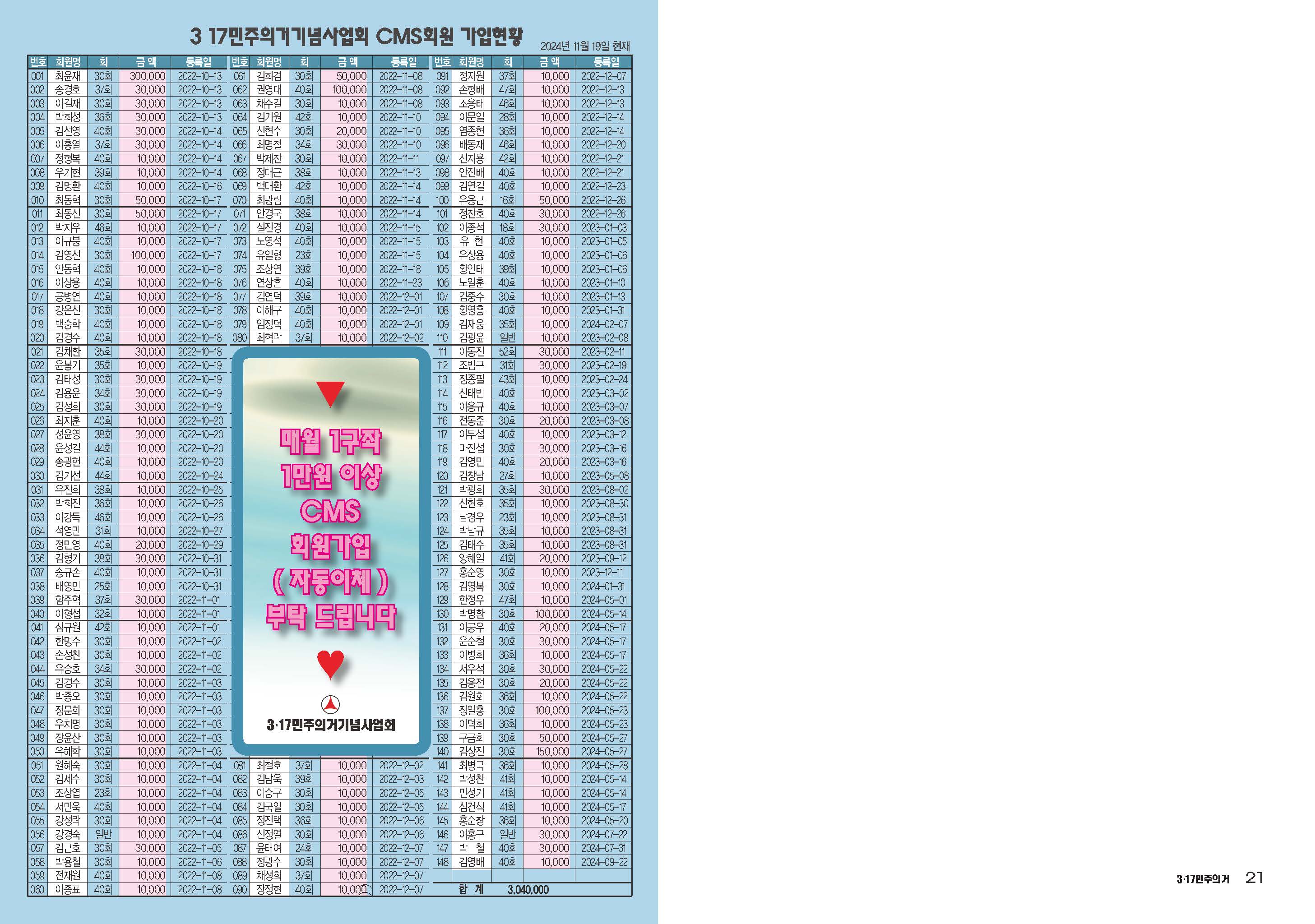 ① 3·17 민주의거 기념사업회는 다음의 개인정보 항목을 처리하고 있습니다.